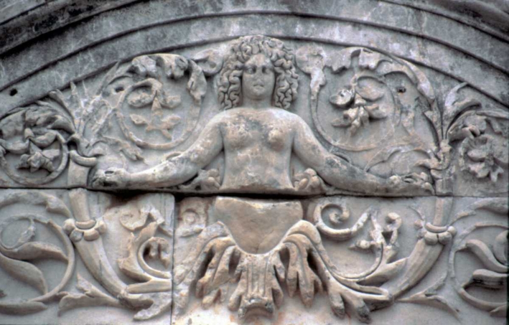 Turkey, Ephesus Carving of a goddess on a ruin
